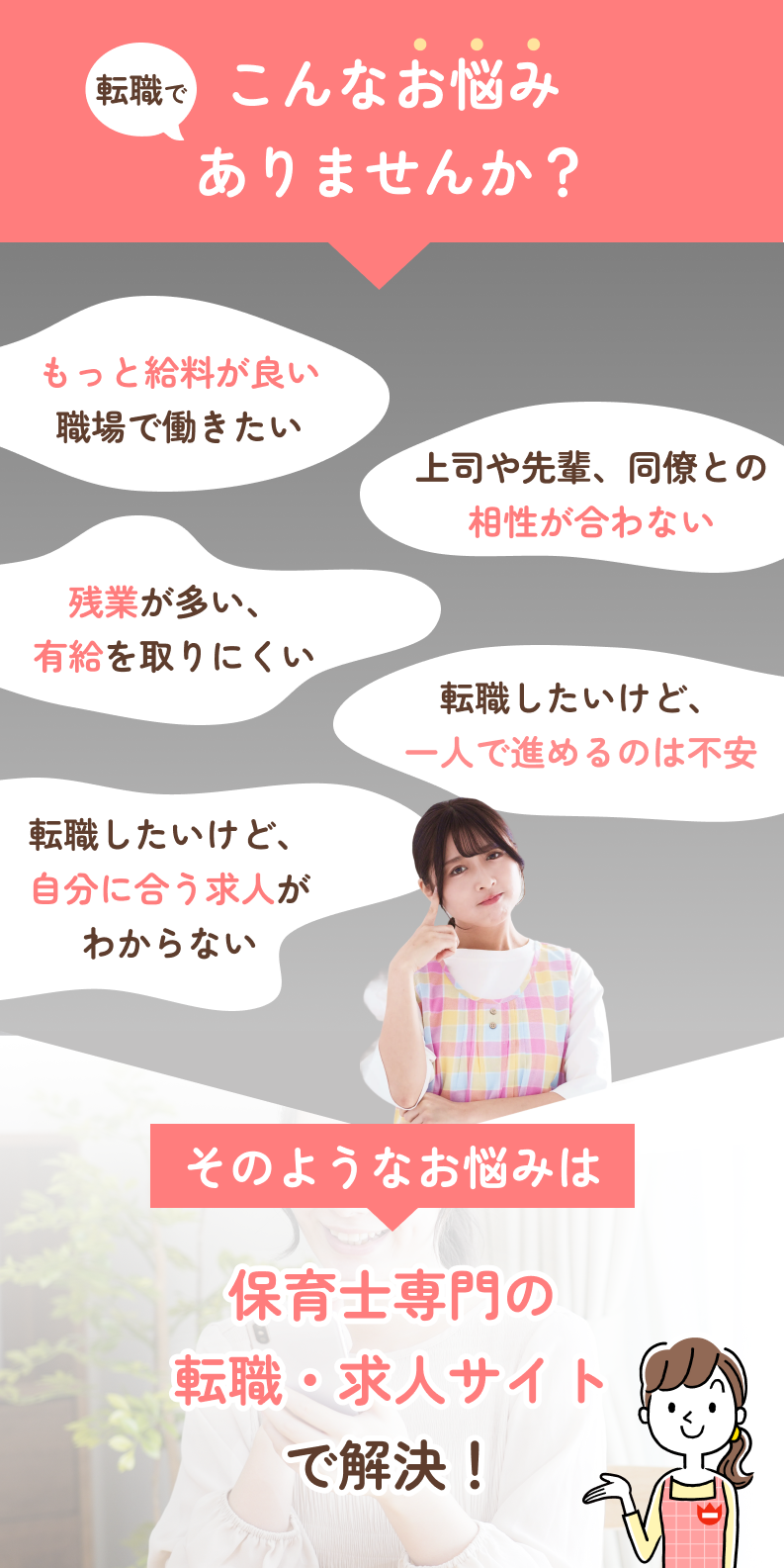 - 大手マイナビで培った実績と知見を活かした保育士の転職専門サポート