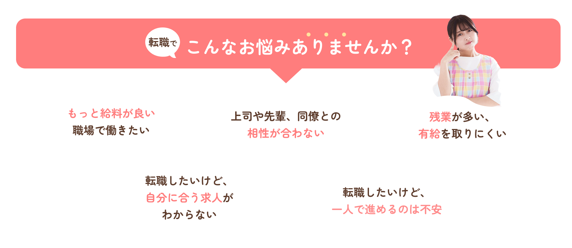 - 入職後の悩みや不安も相談できる、ご入職後のアフターフォローも充実