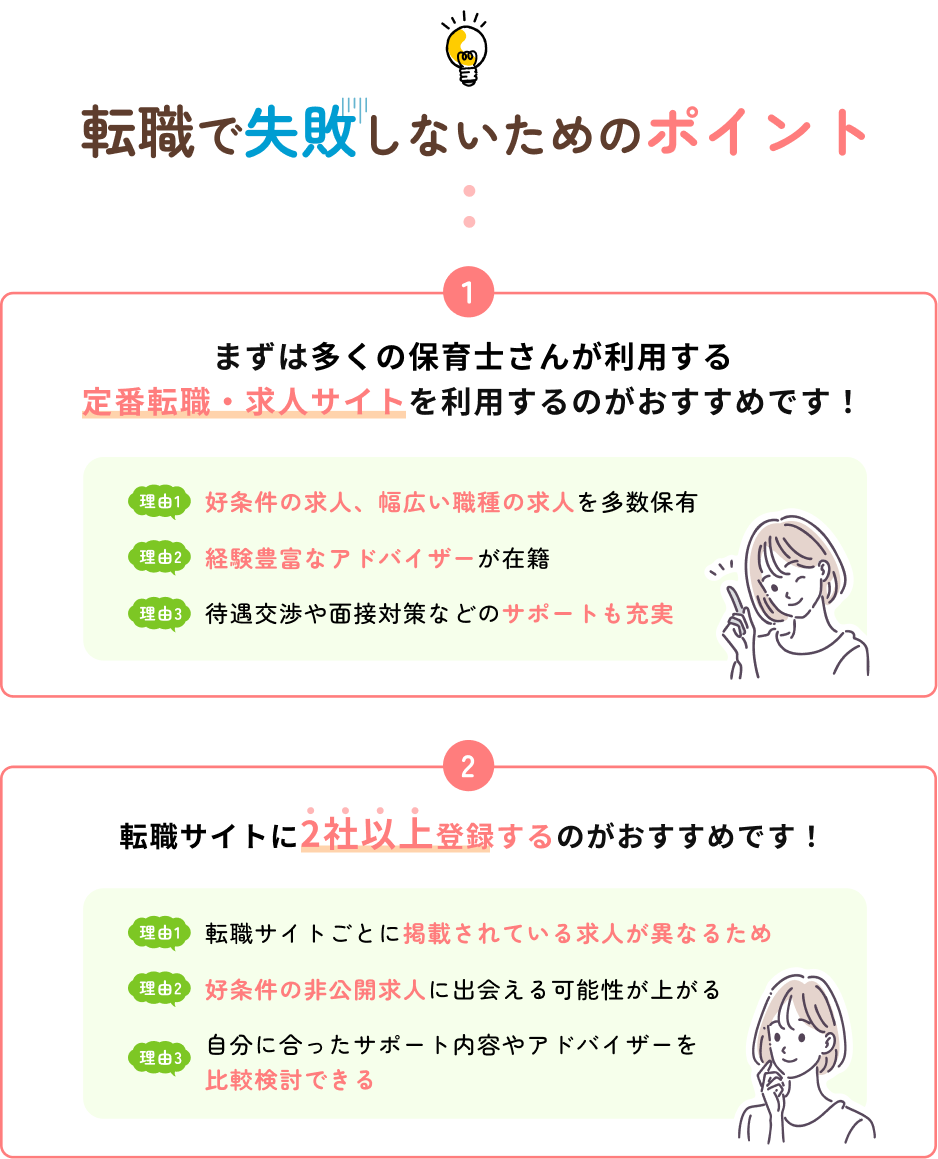 - 大手マイナビで培った実績と知見を活かした保育士の転職専門サポート